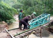 Pacitan, – Dalam Kondisi Puasa, tak menyurutkan semangat Anggota Kodim 0801/Pacitan bersama pemdes dan masyarakat Desa Pagutan dalam melaksanakan pekerjaan pembangunan jembatan gantung perintis garuda di Dusun Tleken, Desa Pagutan, Kecamatan Arjosari, Kabupaten Pacitan. Sabtu (21/2/2026).