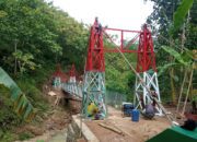 Pacitan, – Pembangunan Jembatan Gantung Perintis Garuda Sungai Kalisat, Dusun Karang, Desa Pagutan, Kecamatan Arjosari, Kabupaten Pacitan, Selasa (3/3/2026) telah mencapai 80 persen, Pembangunan jembatan Gantung tersebut dilakukan secara bergotong royong antara TNI dari Kodim 0801/Pacitan bersama masyarakat Desa setempat.