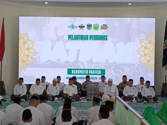 NUSANTARAMERDEKA, – Mewakili Dandim Pacitan Perwira Seksi Personalia (Pasipers) Kodim 0801/Pacitan Lettu Cke Misrum menghadiri Pelantikan Idarah Syu’biyyah Jam’iyyaah Ahlith Thariqah Al – Mu’tabarah An – Nahdliyah (JATMAN) Kabupaten Pacitan yang di hadiri ± 100 orang, bertempat di Pendopo Kabupaten Pacitan. Minggu (25/1/2026).